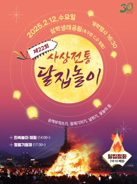 사상구의 전통달집축제인 '제22회 사상전통달집놀이'가 2025년 2월 12일 정월대보름에 삼락생태공원에서 개최됩니다.