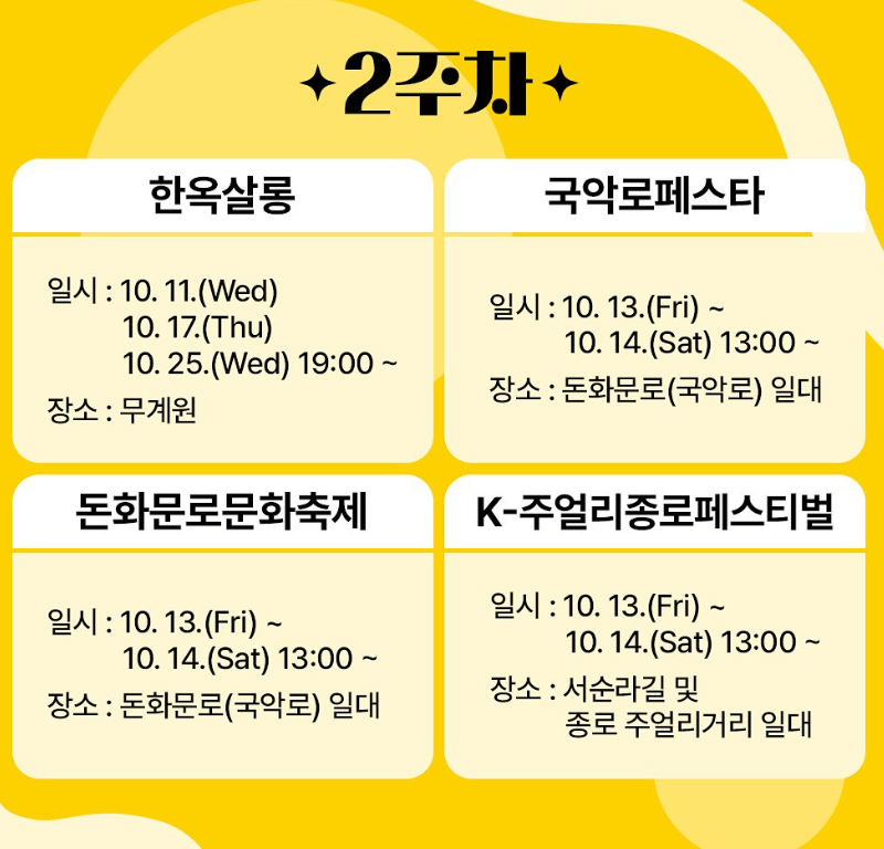 10월 2주) 국악로페스타, K-로드페스타, 돈화문로문화축제, K-주얼리페스티벌