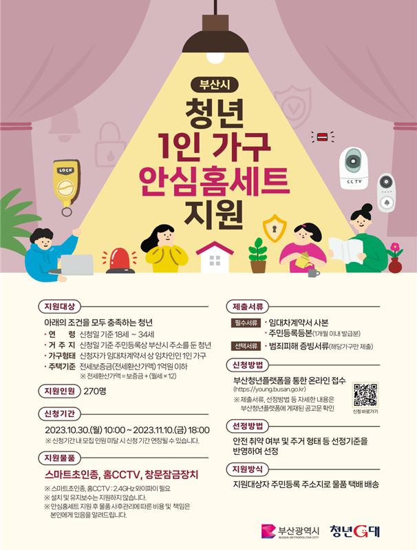부산시, 18~341인 가구 청년 대상 스마트초인종 CCTV 창문잠금장치로 구성된 '안심홈세트' 지원