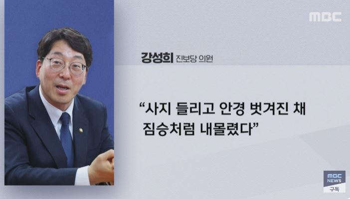 안경도 벗겨진 채 짐승처럼 끌려나가는 대우받았야 하는가