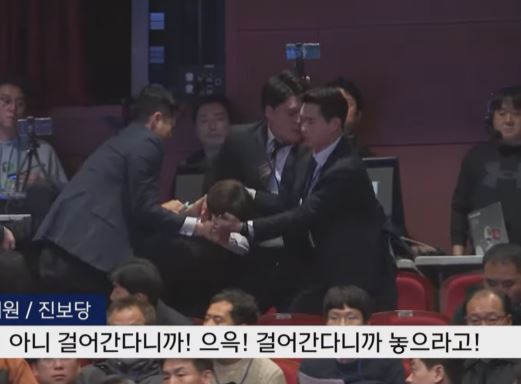 강성희 의원, 대통령 경호원에게 입을 막은 채 끌려나가..진보당