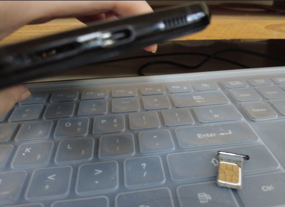 ② 유심칩 빼서 지우개로 청소 후 다시 삽입.