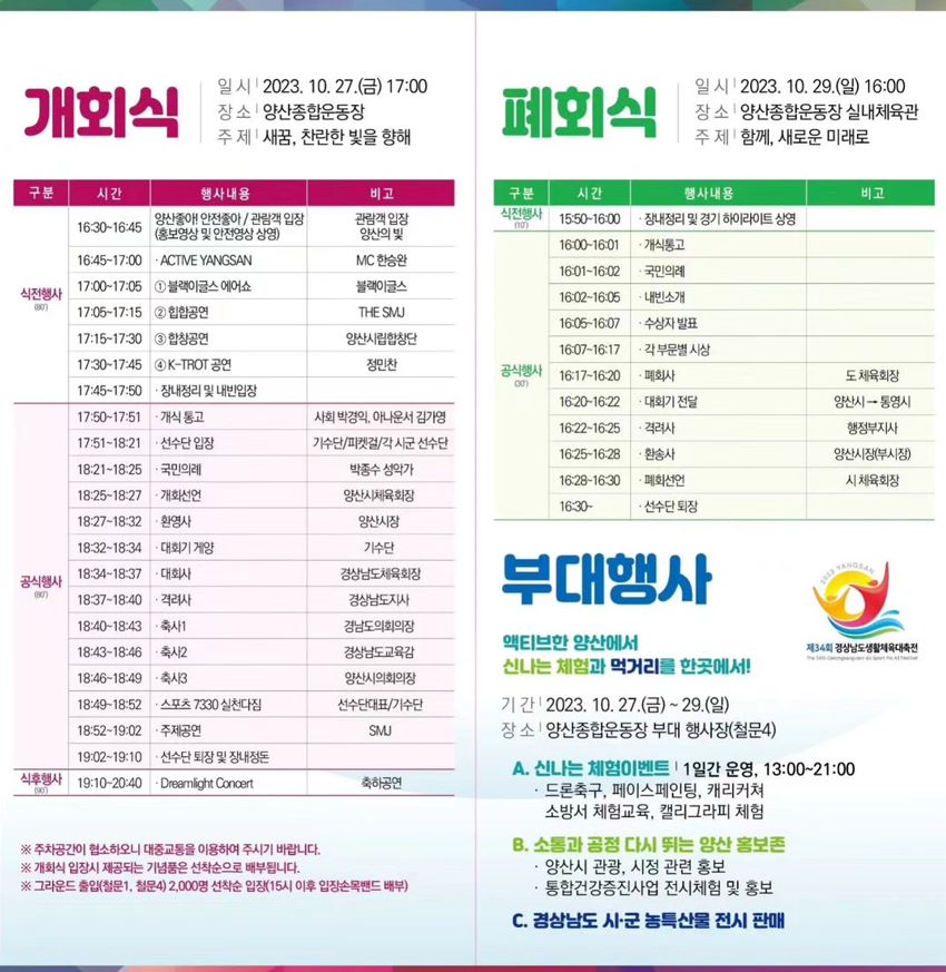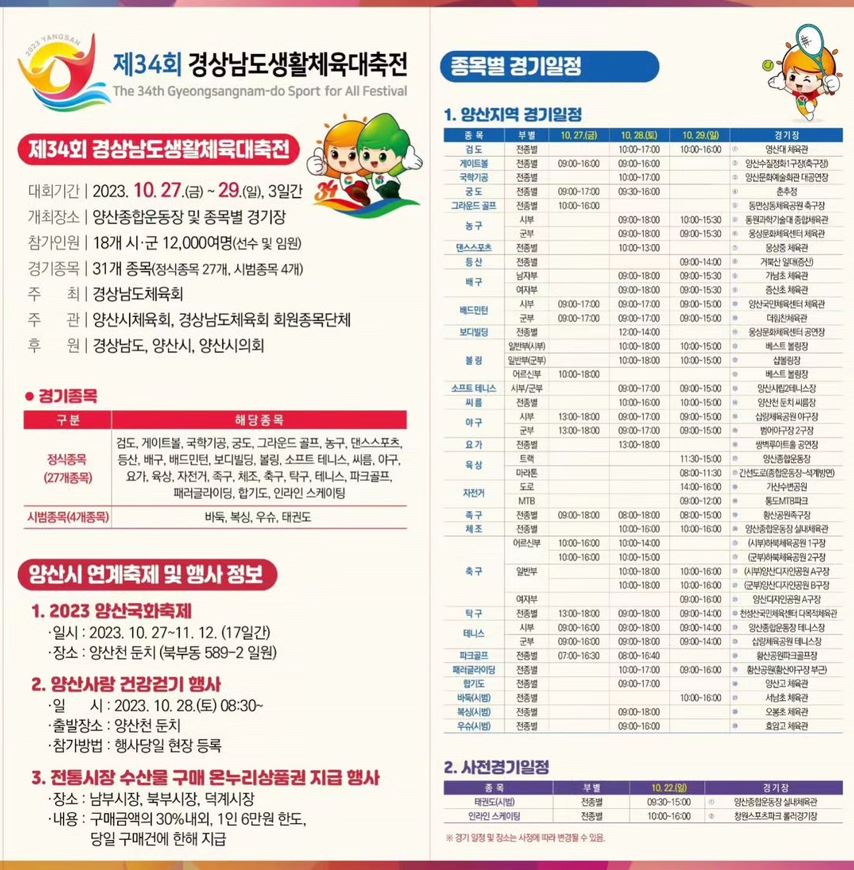 2023년 경상남도생활체육대축전, 양산시 개최, 대회 소개, 경기 일정, 종목, 대진표, 갤러리, 관광 정보 제공