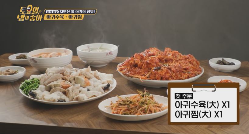 매일 산지 공수 살아있는 찐한맛 생아귀 등장 아귀의 찐한맛 촉촉한 아귀 살부터 녹진한 아귀 간까지 본연의 맛 아귀수육과 매콤 고소한 아귀찜