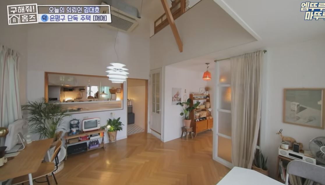 집 내부는 이국적인 느낌의 거실과 높은 층고가 돋보였고, 주방은 작지만 아기자기한 디자인으로 눈길을 끌었습니다. 화장실은 샤워실과 분리되어 있었으며, 2개의 방이 있었습니다. 2층에는 층고가 높은 비밀스러운 공간이 있어 다양한 용도로 활용할 수 있었으며, 야외 베란다가 있어 전체적으로 김대호 아나운서님의 마음을 사로잡았습니다.