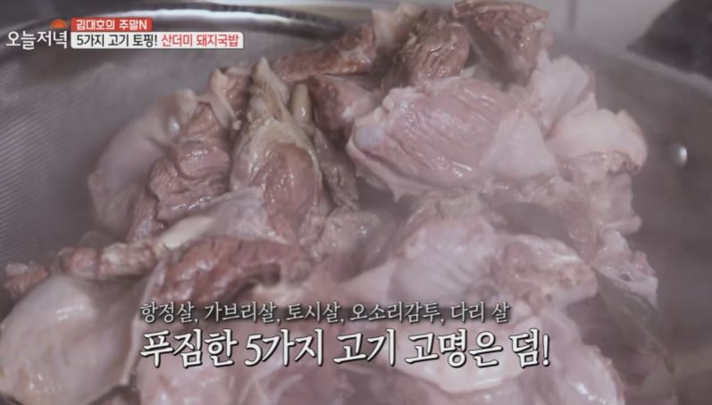 생방송 오늘저녁 김대호의 주말N, 5가지 고기토핑이 산더미 같이 올려져 있는 부산 돼지국밥을 함께 즐겨보도록 하겠습니다.