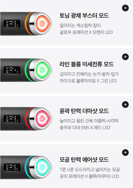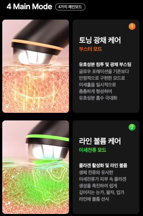 광채, 탄력, 볼륨, 모공, LED, 진동 케어 이 모든 케어를 단 하나로 Booster Pro