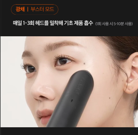 부스터 프로는 기존 힐러보다 헤드의 면적이 넓고 단계별로 더 섬세하고 강력한 케어가 가능해서 그런지 스킨 케어 제품의 흡수도 더 잘 됩니다.