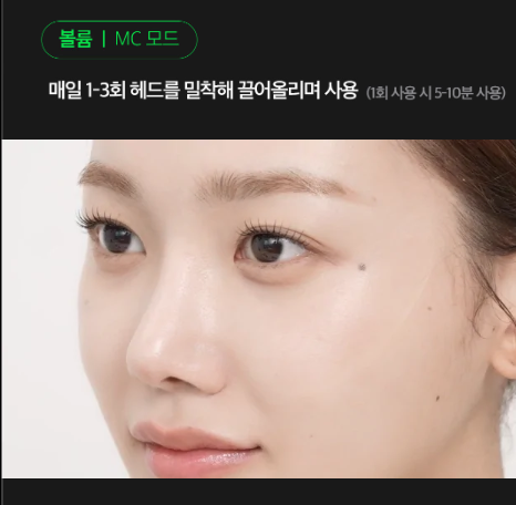 새롭게 선보이는 미세전류 기능 깊어지고 진해진 눈가, 팔자, 입가 라인 콜라겐 생성 촉진으로 차오르는 볼륨