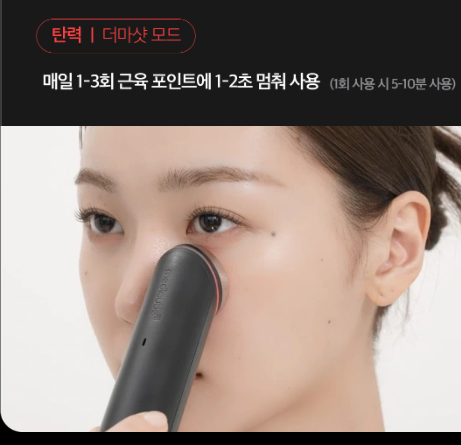 에어샷, 힐러, 더마샷 모드 뿐만 아니라 미세 전류 모드가 추가되어 팔자, 눈가, 입가 라인에 따라 프로를 꾸준히 사용해주면 해당 부위가 탱탱하게 차오르는 걸 느낄 수 있습니다.