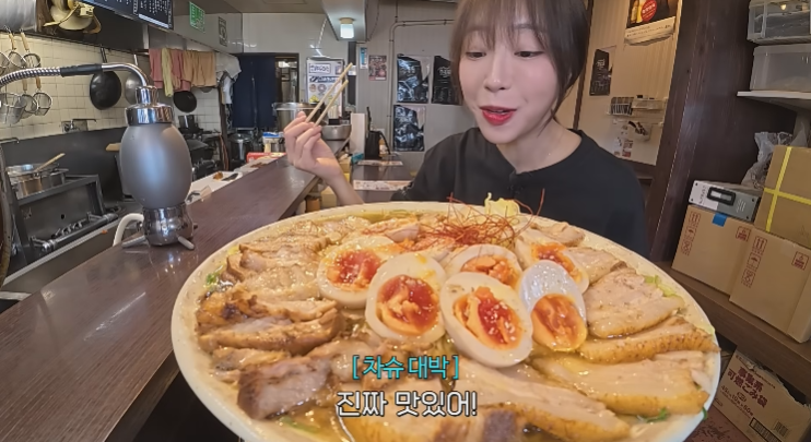 쯔양은 ‘멘야하나비’ 본점 사장님과의 인연으로 특별히 첫 라멘 먹방 챌린지에 참여하게 되었습니다. 이곳은 평소에도 대기줄이 긴 인기 라멘집으로, 현지인과 관광객 모두에게 사랑받는 맛집이에요.