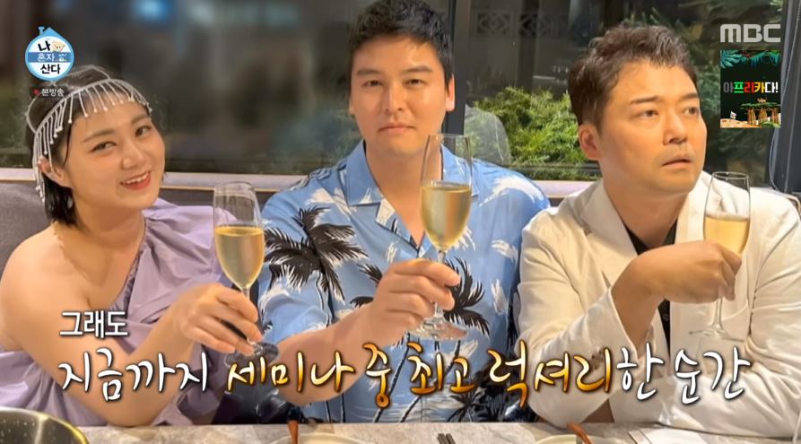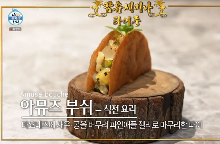 샴페인을 마신 후, 아뮤즈 부쉬(식전요리)를 즐겼습니다. 분위기에 취한 전현무는 술에 취한 듯이 계속해서 샴페인을 마시다가 결국 이장우에게 따라주다가 실수로 샴페인을 쏟아버렸습니다. 전현무는 웃음 속에 "분위기에 취해서 샴페인을 너무 많이 먹었다. 갑자기 졸음이 밀려오며 정신이 몽롱해지고 있어"라고 이야기했습니다.