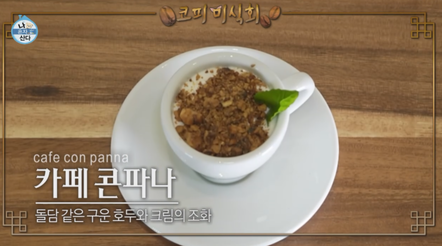 호두를 먼저 먹고 생크림가 함께 커피를 드세요