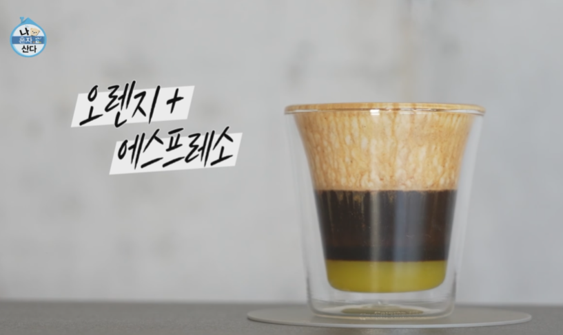 오렌지청 + 에스프레소 2샷 + 생크림으로 만든 오렌지에스프레소로 생크림 에스프레소를 먹고 오렌지 청은 마지막에 디저트 개념으로 드시면 됩니다.