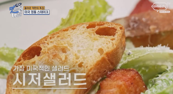 식사는 가장 미국적인 샐러드인 시저 샐러드로 시작됩니다. 월렌스키 샐러드와 함께 가장 인기 있는 메뉴라고 해요. 특히 훈연한 베이컨이 들어가 짭조름한 맛이 일품이라고 합니다.