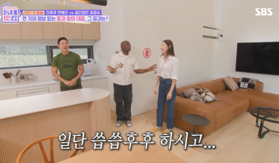 지난 7일 첫 방송된 '동네멋집2'는 새로운 MC 한혜진 씨의 특별한 'MC 신고식'으로 많은 관심을 받았습니다. 기존 MC이자 '공간 장인'인 유정수 대표는 첫 의뢰 장소로 강원도 홍천에 있는 한혜진 씨의 별장을 방문했으나, 집주인이 한혜진 씨인 줄은 모르고 작업을 진행했습니다.