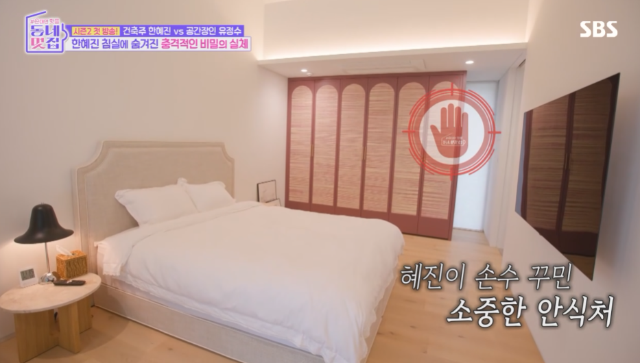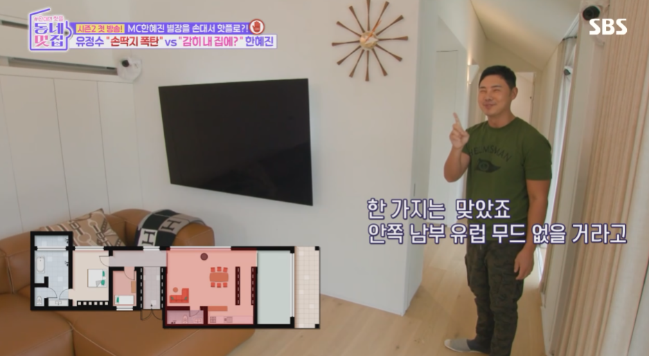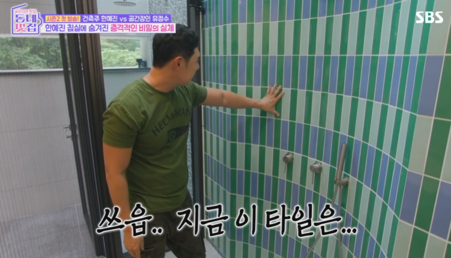 모니터룸에서 이 상황을 지켜보던 한혜진 씨는 인테리어에 대해 자신감을 보이며 "손딱지(인테리어 수정을 뜻하는 말)를 하나도 안 붙일 것"이라고 말했지만, 유정수 대표는 현관 입구 바닥부터 손딱지를 붙여 웃음을 자아냈습니다. 이어 유 대표는 집주인의 키와 나이를 추측하며 한혜진 씨의 분노를 샀습니다.