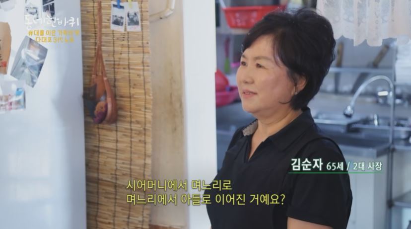 아들과 며느리가 함께 식당을 운영하며, 어머니의 요리를 돕고 막걸리 제조를 맡고 있습니다. 이들은 가족의 전통을 이어가면서도 현대적인 감각을 더해 새로운 도전을 하고 있습니다. 어머니는 아들 부부의 도움에 감사하며, 그들과 함께 가업을 이어가는 데 큰 자부심을 느낍니다.