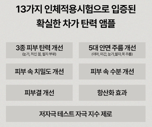 깊게 파인 주름은 채워주고 힘없이 처진 피부를 빈틈없이 채워주는 차가 탄력 앰플