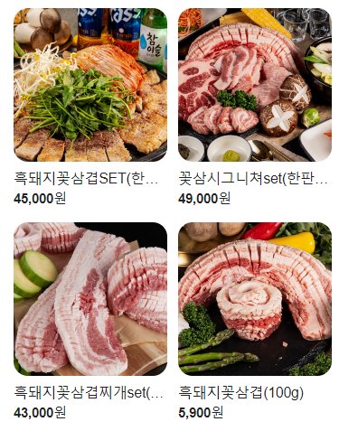 삼겹살 말고 다른 닭수들도 전부 6,900원입니다.