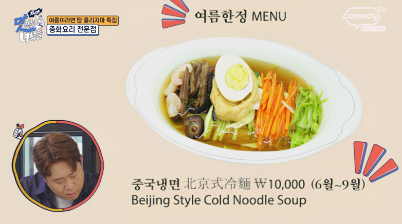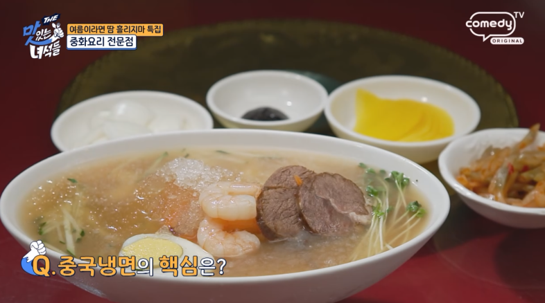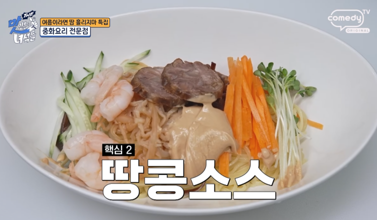 여름 한정판 메뉴로 소개된 특별한 중국 냉면과 다양한 요리들로 유명한 곳 소고기 육수와 땅콩잼의 조화, 특별한 중국 냉면입니다.