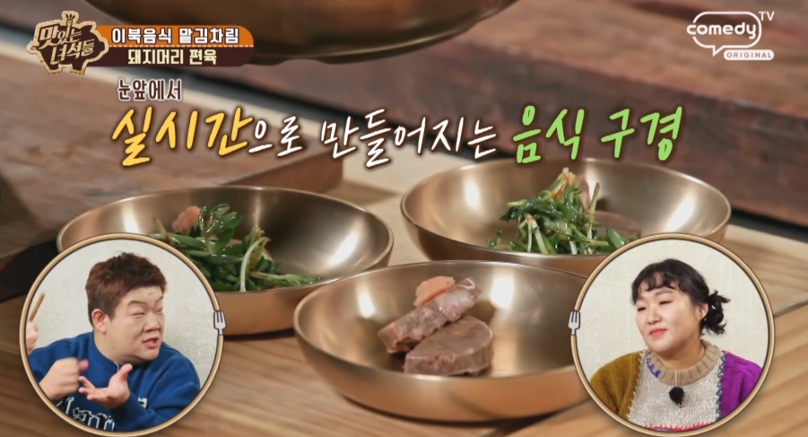 맛있는 녀석들 이북음식 맡김차림, 돼지머리 편육, 온면, 원산물회, 채소피순대, 백순대, 아바이순대, 오리순대, 양순대, 솥밥, 수육, 인절미를 소개합니다.