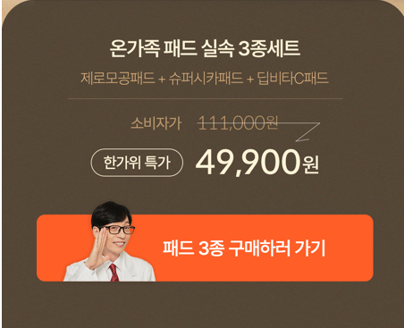 온가족 패드 실속 3종세트 제로모공패드 + 슈러시카패드 + 딥비타c패드 한가위 특가 49,000원