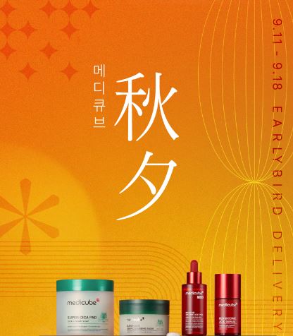 메디큐브 한가위 얼리버드 대축제 진행 중입니다. 할인 한정 혜택으로 빠르게 풍성한 한가위 뷰티템 준비하세요.