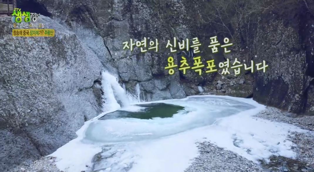 생생정보 믿고 떠나는 스타의 고장 개그맨 심현섭의 경상북도 청송군, 주왕산, 용추폭포, 얼음골 빙벽, 사과 한정식, 청송 꽃돌을 소개합니다.