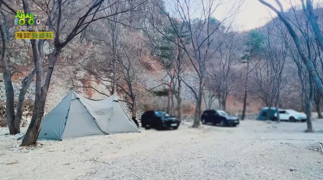 빙벽을 보며 즐길 수 있는 게 또 있다죠. 얼음골 앞에서 즐기는 야외 캠핑