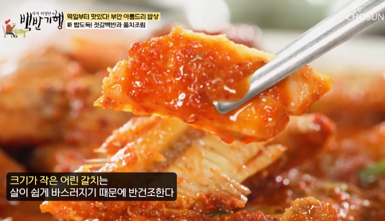 ‘풀치’는 갈치 새끼를 뜻하는 지역 방언인데요. 가을이 제철인 이 풀치를 구워내거나 조림으로 내어 한 상 가득 차려내는 풀치백반은 보기만 해도 군침이 돌 정도입니다. 여기에 곰소항답게 직접 담근 젓갈이 함께 나와 밥도둑의 진수를 보여줍니다.