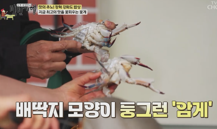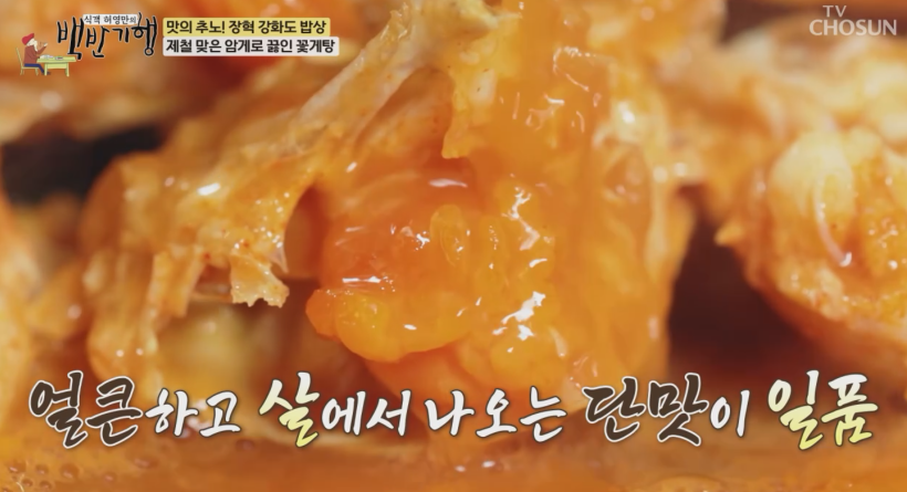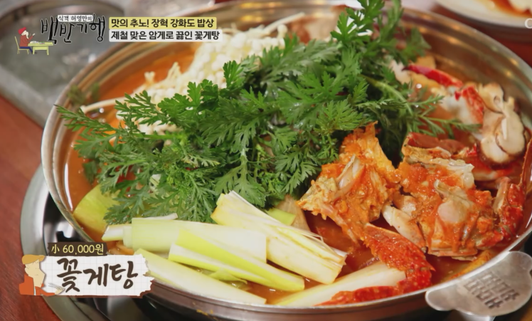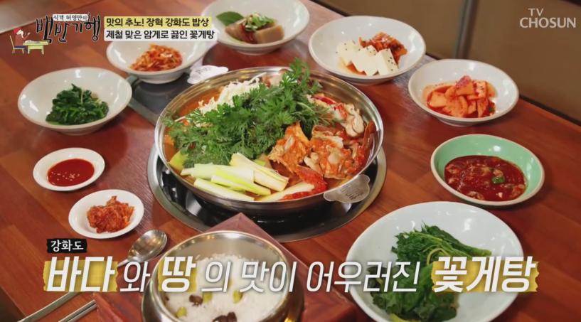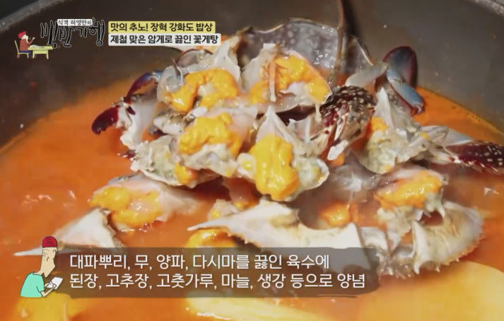 제철 맞은 강화도 대표 해산물 살과 알이 가득찬 꽃게 영롱한 빛깔 대파뿌리, 무, 양파, 다시마를 끓인 육수에 된장, 고추장, 고춧가루, 마늘, 생강 등으로 양념해서 꽃게탕을 만듭니다.