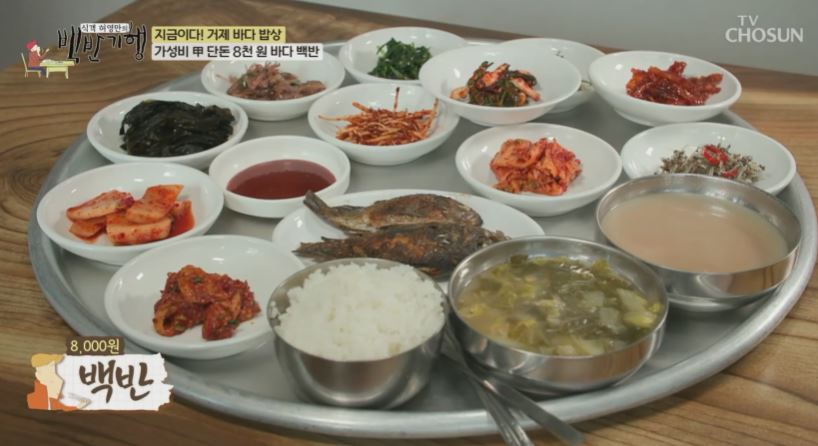 구수한 숭늉을 먼저 에피타이저로 맛볼수 있고 싱싱한 제철음식에 생선구이까지 12가지 반찬의 바다 밥상이 단돈 8천 원으로 거제까지 기름값이 아깝지 않습니다.