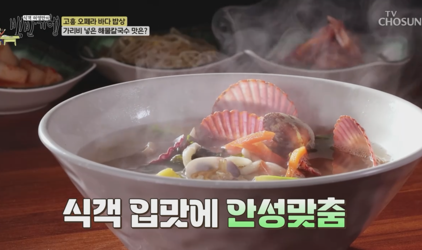 해물칼국수는 신선한 가리비와 함께 다양한 해산물이 들어가 있어 풍부한 맛을 자랑합니다. 국물은 깊고 진한 맛이 나며, 면발은 쫄깃하고 부드러워 한 입 먹는 순간 그 맛에 빠져들게 됩니다. 방송에서 허영만과 박현준 감독이 이 해물칼국수를 맛보는 장면이 인상 깊었는데, 그들의 반응이 이 요리의 맛을 잘 설명해 주었습니다.