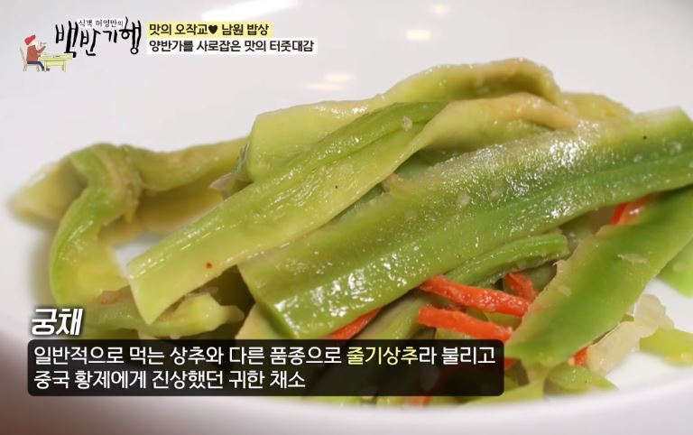 식객도 처음 맛보는 피마자잎볶음, 궁채도 맛있게 먹습니다.