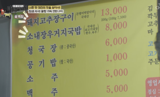 '백반기행' 대전의 숨은 맛집 불향가득 돼지고추장 연탄구이와 소내장우거지국밥