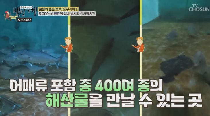 도쿠시마의 맛있는 추억 실내 낚시와 신선한 나루토 도미와 바비큐요리, 백반기행의 마지막 여정, 도쿠시마에서의 특별한 식사 경험을 소개합니다. 8,000m² 규모의 실내 낚시터는 마치 도쿠시마 바다를 그대로 옮겨놓은 듯한 느낌을 줍니다. 이곳에서는 어패류를 포함해 총 400여 종의 해산물을 만날 수 있어, 진정한 해산물 천국이라고 할 수 있죠.