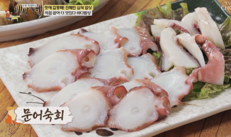 문어 숙회: 직접 잡아온 문어를 얼렸다가 녹여서 제공, 신선하고 쫄깃합니다.