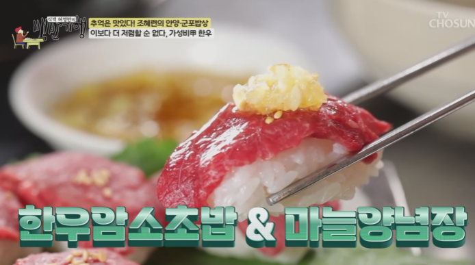 한우초밥: 신선한 한우와 고슬고슬한 밥의 만남. 한 입 베어 물면 입안 가득 퍼지는 고소함에 반하실 거예요.