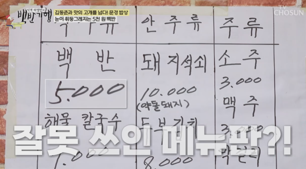 허영만 선생님은 메뉴판을 고쳐야 된다고 하는데 10년째 이 가격으로 유지하고 있다고 합니다.
