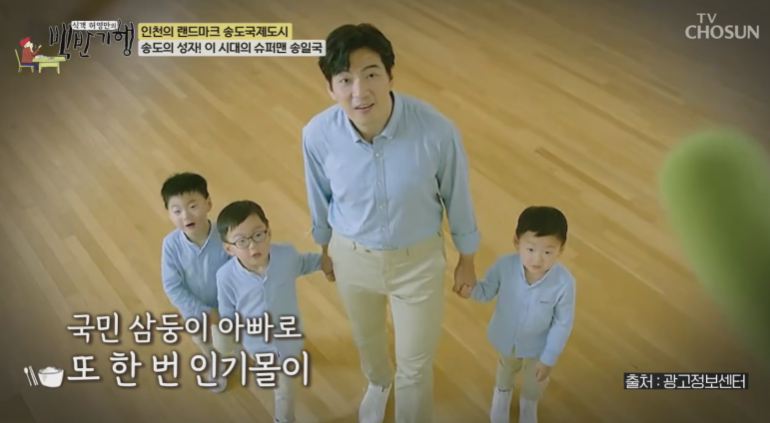 송일국은 2006년 대하사극 '주몽'에서 주몽 역으로 큰 인기를 끌었고, 예능 프로그램 '슈퍼맨이 돌아왔다'를 통해 '삼둥이 아빠'로 많은 사랑을 받았습니다. 그는 현재도 가족을 향한 사랑과 헌신을 보여주며, 국민 삼둥이 아빠로 인기를 끌고 있습니다.