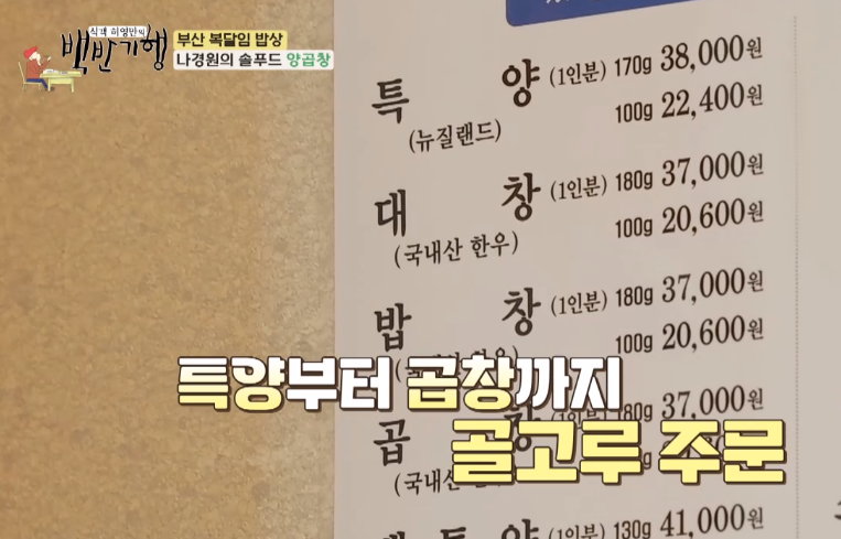 부산의 특미 양곱창 맛의 비밀은 3시간 이상 손질과 양념입니다.