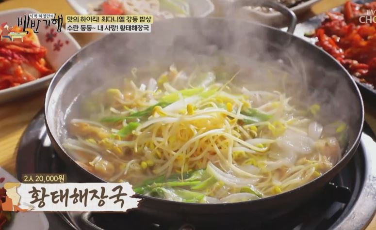 보통은 뚝배기로 나오는데 냄비로 나오는 이유는 황태는 오래 끓여야 진한 맛이 나오기 때문에 냄비로 나와 불어 더 끓이면서 드시게 나옵니다.