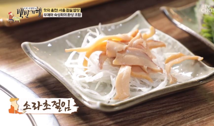 아삭하고 시원한 무와 쫀득하고 고소한 회 거기에 감칠맛을 더하는 된장의 조합이 아주 신선합니다.
