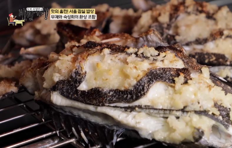 바로 잡은 우럭에 마늘즙을 더하고 간 마늘을 듬뿍 올려 바삭하게 구워낸 별미 중의 별미입니다.