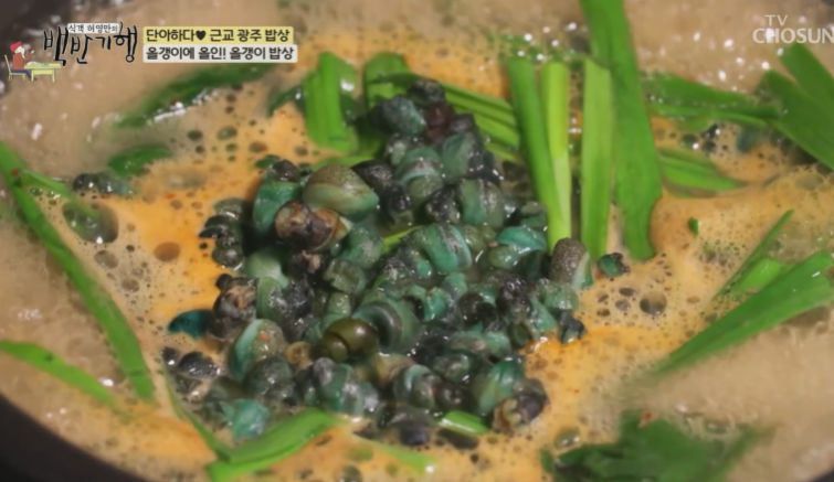 백반기행 단아한 근교 광주 밥상 올갱이올인, 올갱이 해장국, 올갱이 무침, 올갱이 전을 허영만 선생님과 배우 오윤아가 가정집 같은 식당을 소개합니다.