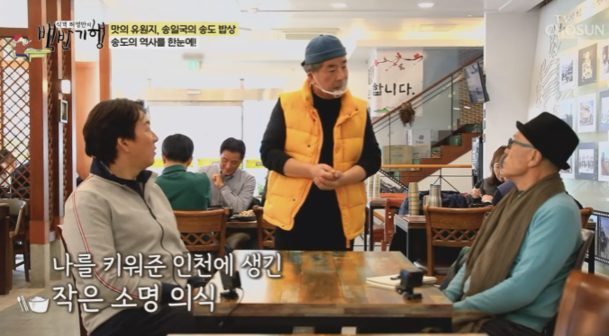 인천 송도에 위치한 장독집 배우 송일국과 함께 깊고 진한 국물의 장국밥과 부드러운 고기를 채소와 함께 싸먹는 장육쌈을 소개합니다. 이곳은 송도의 역사를 한눈에 볼 수 있는 사진 갤러리도 마련되어 있어 특별한 분위기를 제공합니다.