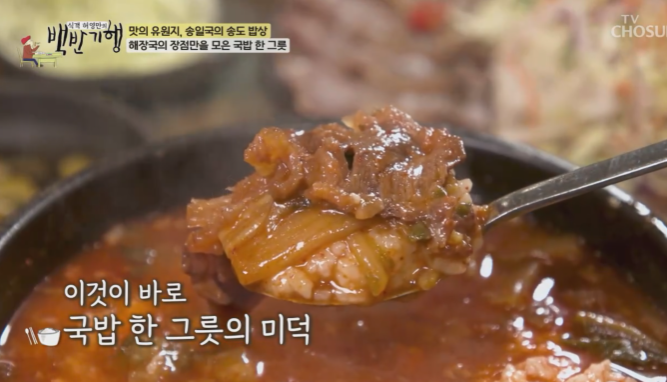 인천 송도에 위치한 장독집 배우 송일국과 함께 깊고 진한 국물의 장국밥과 부드러운 고기를 채소와 함께 싸먹는 장육쌈을 소개합니다. 이곳은 송도의 역사를 한눈에 볼 수 있는 사진 갤러리도 마련되어 있어 특별한 분위기를 제공합니다.