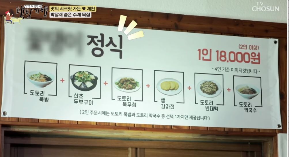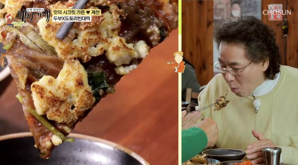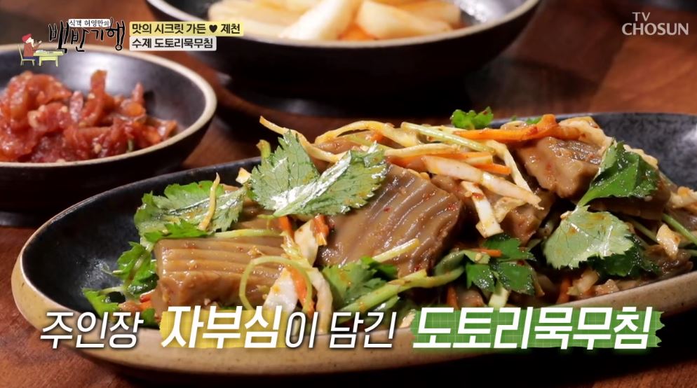 식객 허영만의 백반기행 제천에서 배우 이병준과 함께 진행합니다. 도토리 묵무침, 묵밥, 산초 두부구이, 묵은지, 감가옹심이 백반 정식을 소개합니다.