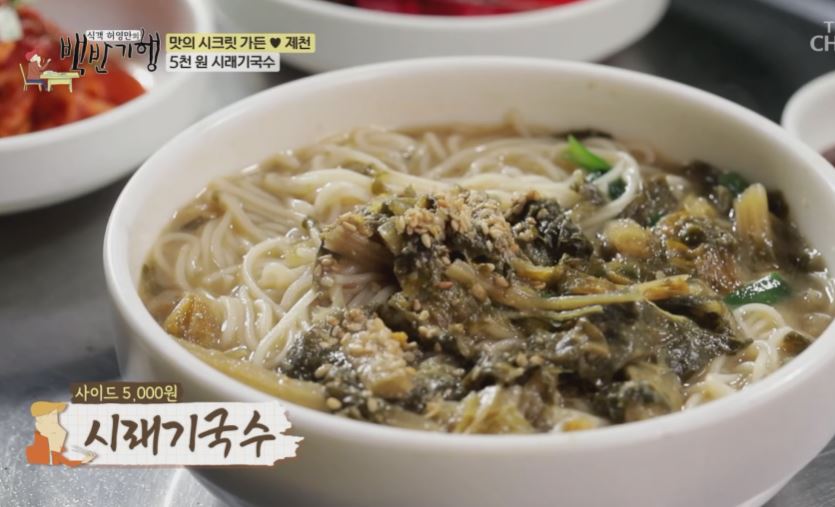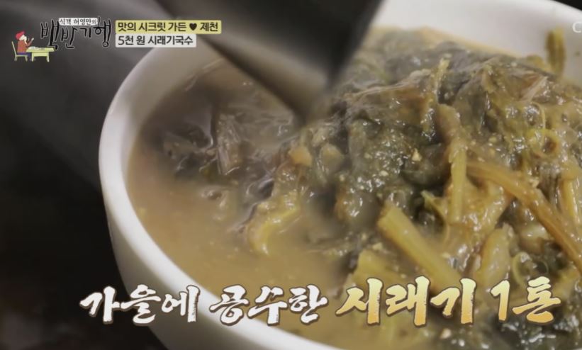 시래기 장국에다가 소면은 삶아 만 거고 된장국에 쌀밥 대신 시래기 된장찌개 국수